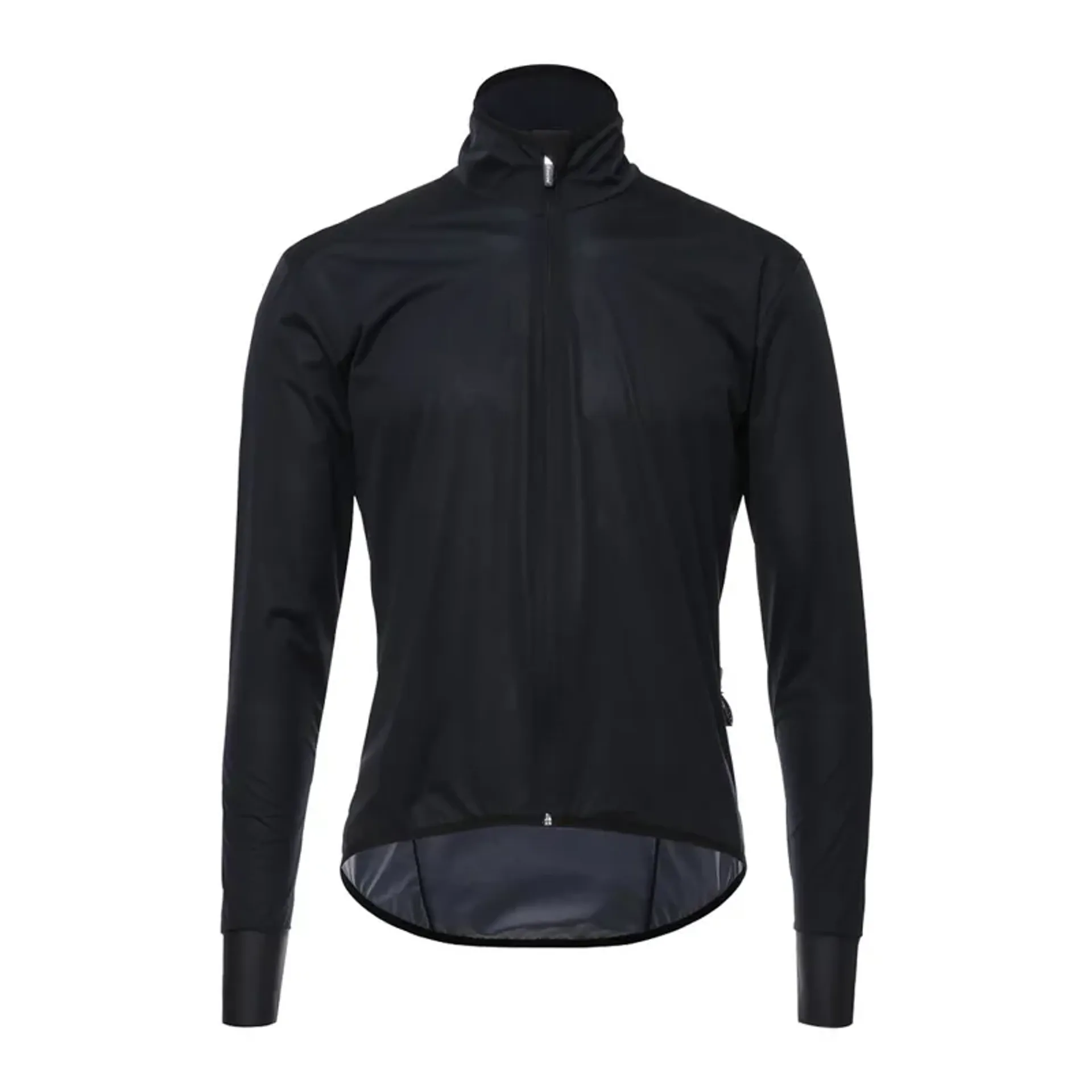 Race fit windbreaker made from windproof and water resistant Scudo fabric. Offers supreme protection against inclement weather. Includes comfortable rubber-fabric inserts on wrists ensuring a snug feel to keep the elements out. High visibility on the road is guaranteed by the reflective Santini logo on the back. Extremely lightweight it can be easily folded inside its own zipped back pocket.