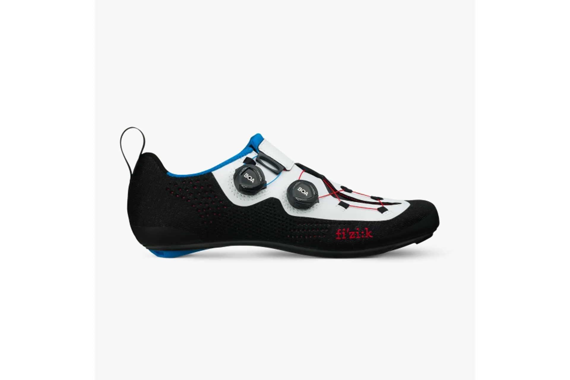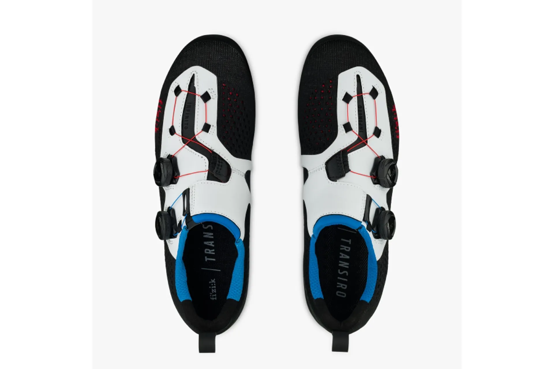 The Transiro Infinito R1 Knit features a cushioned flat-seam collar for a smooth sockless foot entry and riding comfort, and are equipped with a rubberised heel loop for setting the shoes on the bike for transition, and easily and quickly pulling your feet into them.